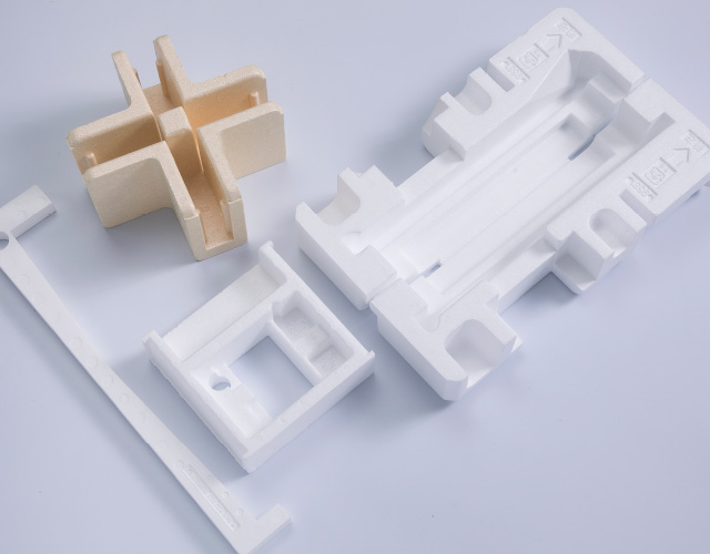 ビーズの発泡流を金型に流し込み成型を行います、広く知られた方法ですがPSからPE・PPまで用途に合わせたご提案を行います。